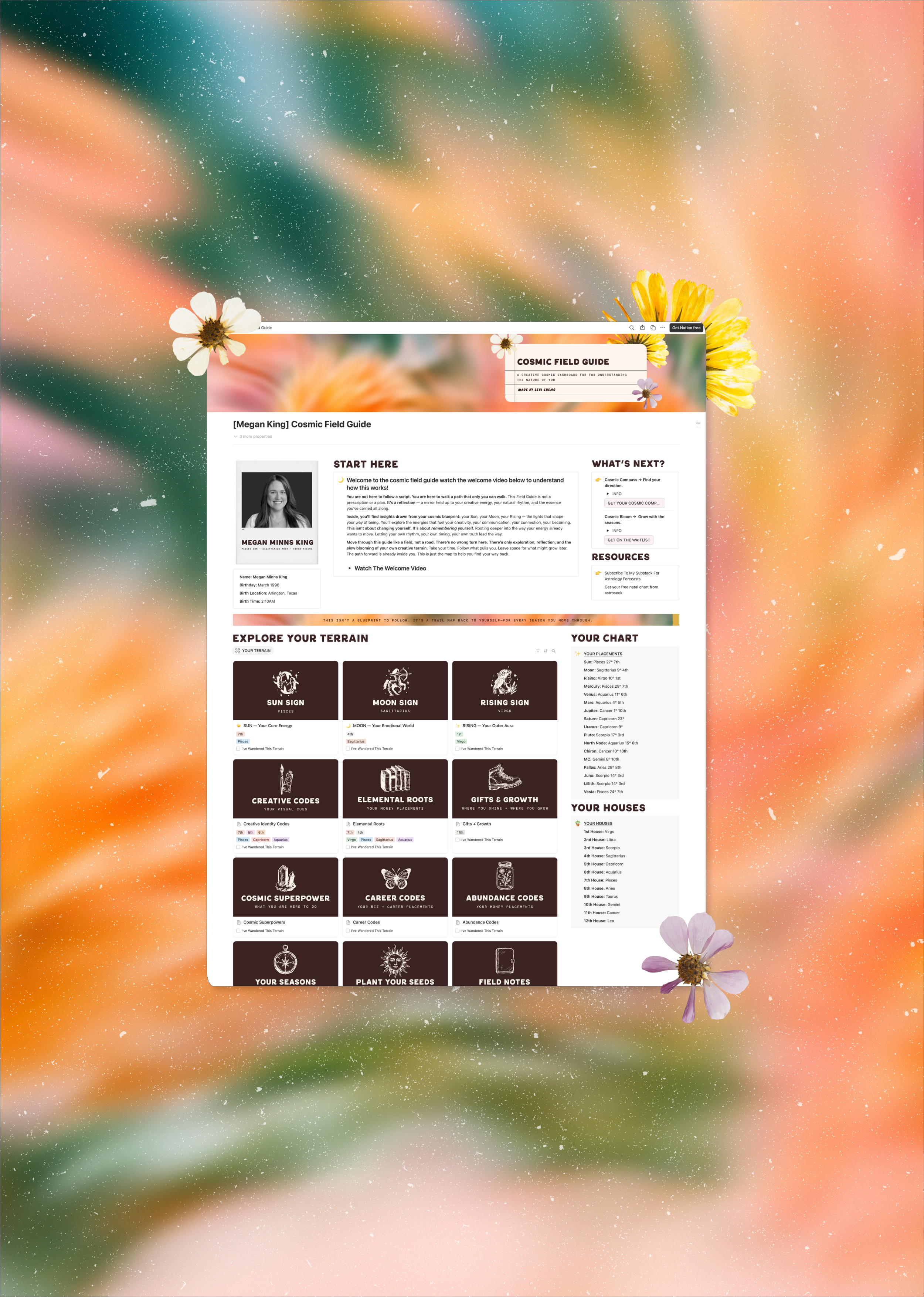 That’s the foundation of the Cosmic Field Guide, a tool to help you see yourself with the same clarity, so you can build a business that feels like it was written for you from the very start.